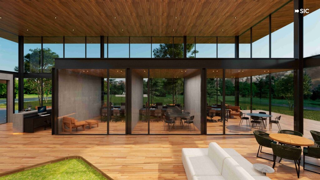 Com infraestrutura completa e um toque de requinte, o espaço foi idealizado em um conceito híbrido: showroom de vendas, escritório de operação e ambiente institucional. Um local pensado para receber momentos especiais, tomar um café, fechar negócios ou simplesmente desfrutar da integração entre natureza e modernidade.