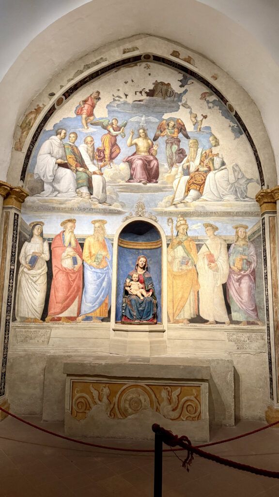 Outro ponto interessante é a cappella di San Severo onde há um afresco (Trinità e Santi) pintado por Raphael e Pietro Perugino