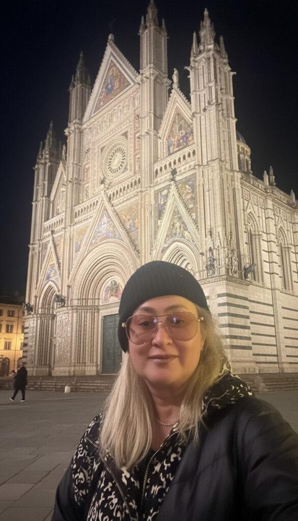 E então, no meio desse labirinto de pedra, surge algo que desafia qualquer descrição: o magnífico Duomo di Orvieto. A fachada dourada, coberta de mosaicos e esculturas, é simplesmente arrebatadora. O impacto visual é imediato, mesmo para alguém como eu, já habituada ao esplendor das igrejas italianas.