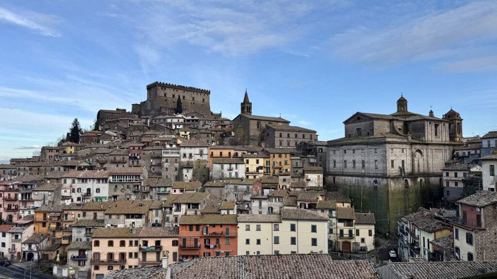 Depois segui para Soriano nel Cimino ou San Soriano del Cimino. A viagem entre os dois lugares leva cerca de 40 minutos, atravessando paisagens muito bonitas. Ali fiquei hospedada no Palazzo Catalani Resort, um hotel instalado também em um antigo palácio, com vista belíssima para a região.